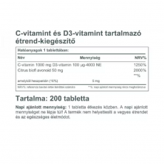 Miért vennéd meg külön külön, mikor mostantól elérhető egyben! C- és D-vitamin egy tablettában, magas hatóanyag tartalommal és extra citrus bioflavonoid kiegészítéssel! Minden egyes tabletta 1000 mg C-vitamint, 4000 NE D3 vitamint és 50 mg citrus bioflavonoidot tartalmaz. A C-vitaminnak vagy más néven aszkorbinsavnak számtalan feladata van a szervezetünkben és kortól, nemtől és évszaktól függetlenül mindig szükség van rá, ráadásul vízoldékony vitamin, ezért fontos a rendszeres pótlása. Ha fontos számodra hogy minél természetesebb formában és minél nagyobb mennyiségben pótold a C-vitamint, ez a készítmény megfelelő választás.
